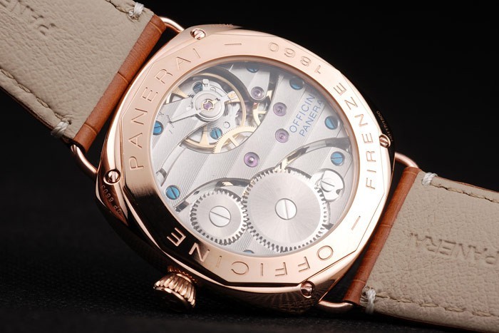 Înapoi: Rose-aur cu ramă transparentă insurubat spate cu ateliere Panerai Firenze 1860 gravată pe ea