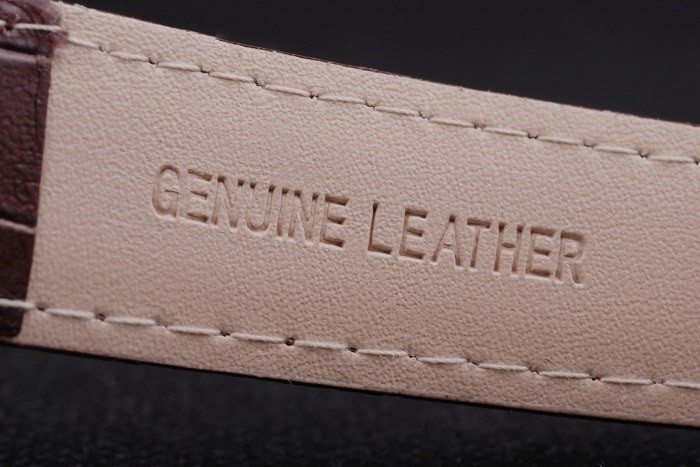 Brățară: Curea bogată din piele maro cu ștampila Patek Philippe și o cârlig de aur de aur Clapetă