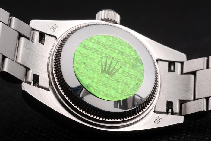 Înapoi: Oțel inoxidabil Push-in Back cu ștampila de logo Rolex Green