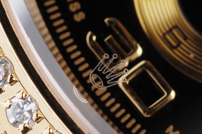 : Aur cutwork tonifiat coroana cu logo-ul Rolex și două coroane suplimentare pe fiecare parte a l