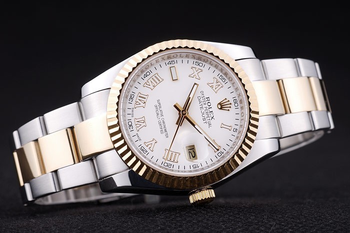 Brățară: periat Oțel inoxidabil și galben Link Bracelet cu logo-ul Rolex Clapeta de implementare