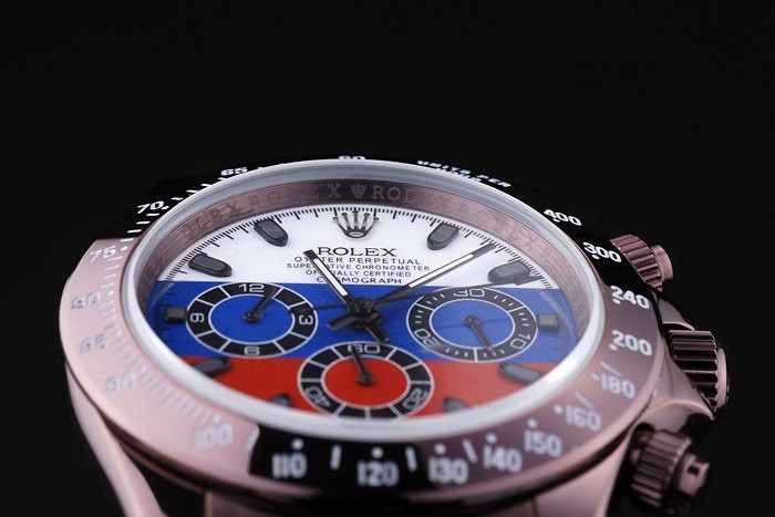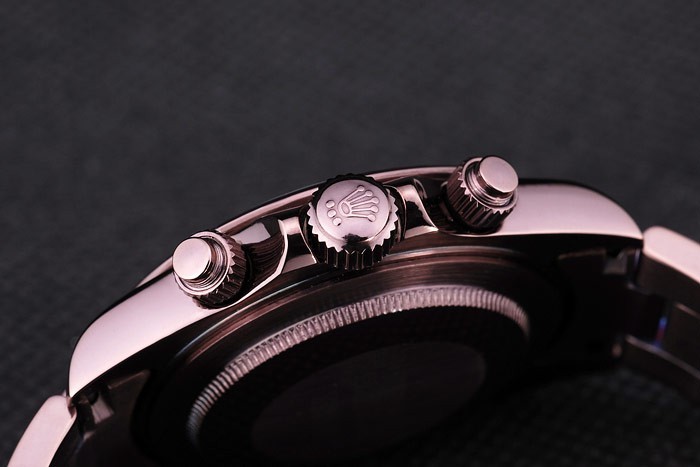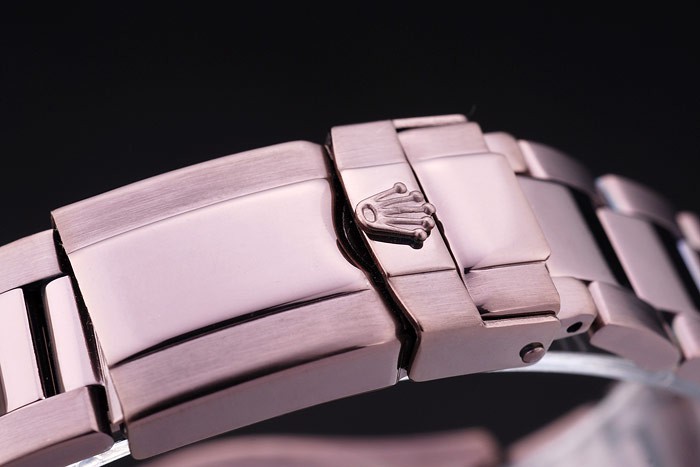 Crown: Rosy Brown Oțel inoxidabil Coroana cu logo-ul Rolex și două coroane de tăiat cu două butoane mai mici pe fiecare Partea IT