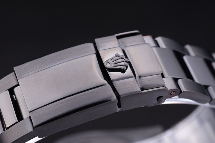 Crown: Coroana cu tăiere cu ioni cu logo Rolex și două coroane de împingere cu tăiere mai mică pe ambele părți ale acesteia