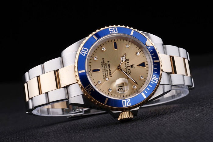 Bezel: Bezel de tonuri de aur cu Luminous albastru smaosed minute marcate de top