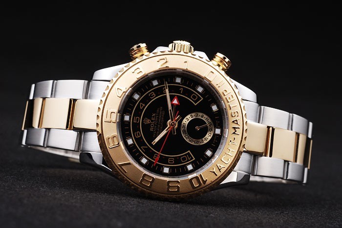 Bezel: Rose Aur placat cu tăietură unidirecțională Bezel cu 1 până la 10 Marcaje și maestru de iahturi Graving Un fundal albastru emailat