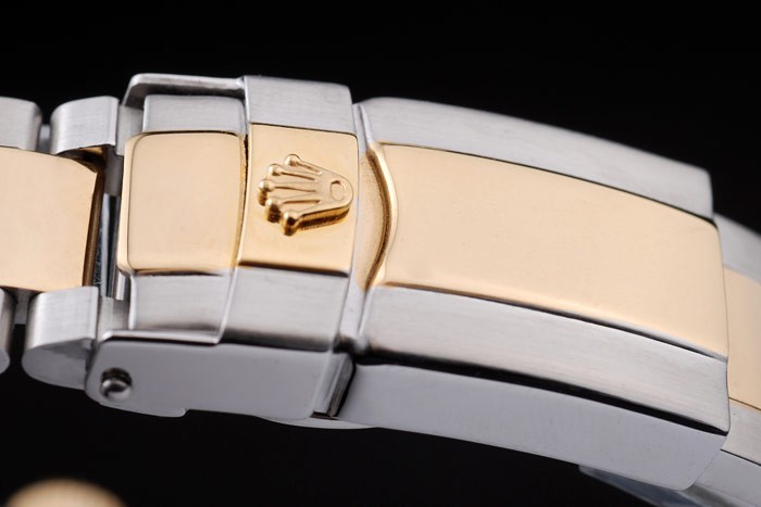 Brățară: Oțel inoxidabil periat și trandafir -Gold Link brățară cu gravură Rolex în interiorul clapetei de implementare și logo-ul Rolex pe partea de sus