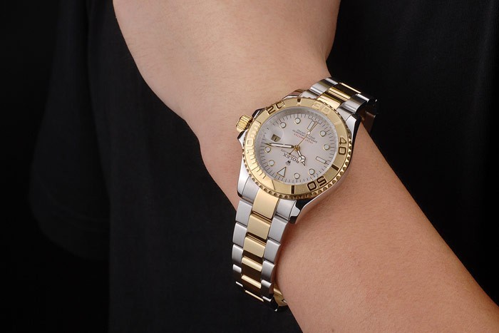 Cauza: Două tonifiat periat și ton de aur din oțel inoxidabil legătură brățară cu gravura Rolex ori mai mare în incuietoare cu emblema Rolex