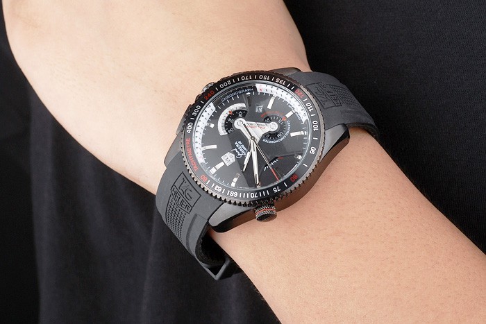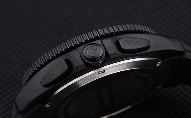 Crown: Oțel inoxidabil din oțel inoxidabil Crown cu logo TAG Heuer Logo plus două Coroane suplimentare pe ambele părți și una pe colțul superior opus