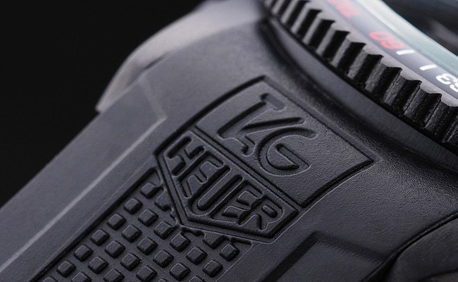 brățară: curea texturată de cauciuc negru cu căldură reliefied și gravat Tag-ul de ștampilă Heuer Clapetă