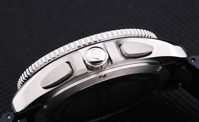 Crown: Coroana de tăiere din oțel inoxidabil din oțel inoxidabil cu logo-ul Tag Heuer Plus două coroane suplimentare pe ambele părți și una în colțul de sus opus < Br> Grosimea cazului: 17 mm