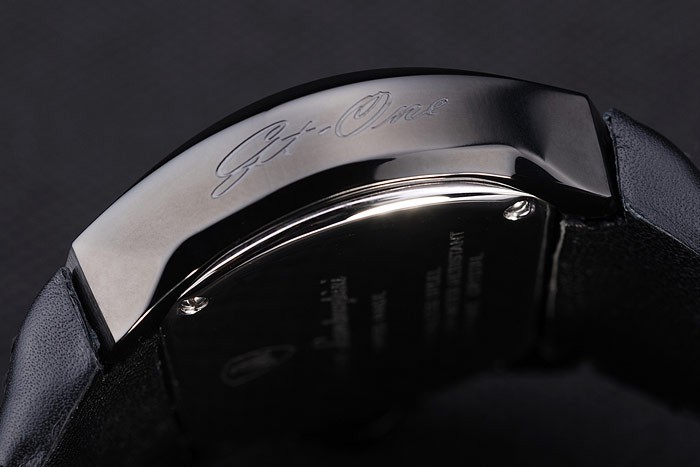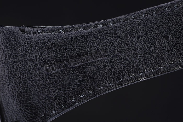 Bratara: curea de piele neagră cu ștampila de căldură și Tonino Lamborghini Tonino Lamborghini Logo Embossed și gravat Placat cu ioni – Flip-Over Clot Clasp