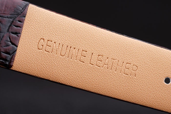 brățară: cureaua de piele de maronă bogată cu inscripția „Vacheron Constantin” și cârligul cârligului Clădire