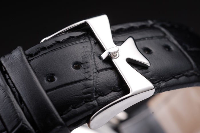 bratara: curea din piele de crocodil negru cu căldură în relief Vacheron Constantin timbru și oțel inoxidabil lustruit Vacheron Constantin logo-cârlig catarama incuietoare