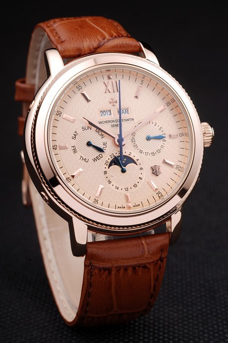 brățară: maro curea din piele de crocodil cu căldură în relief ștampila Vacheron Constantin și trandafir placat cu aur Vacheron Constantin logo cârlig-catarama incuietoare