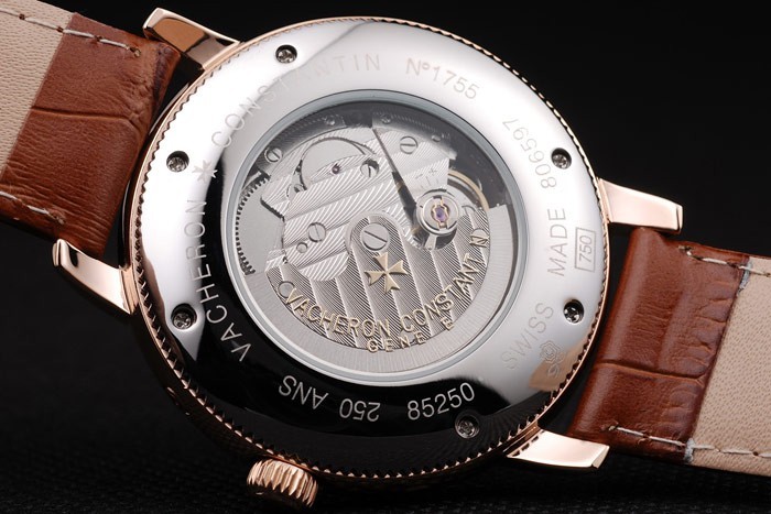Înapoi: Oțel inoxidabil înșurubată în jos din spate, cu centrul transparent și Vacheron Constantin gravura