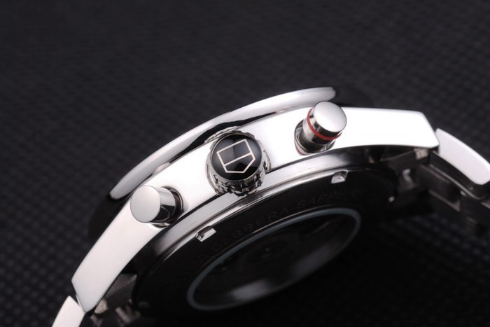 Crown: coroana din oțel inoxidabil lustruit cu logo-ul Tag Heuer și două coroane mai mici pe ambele părți